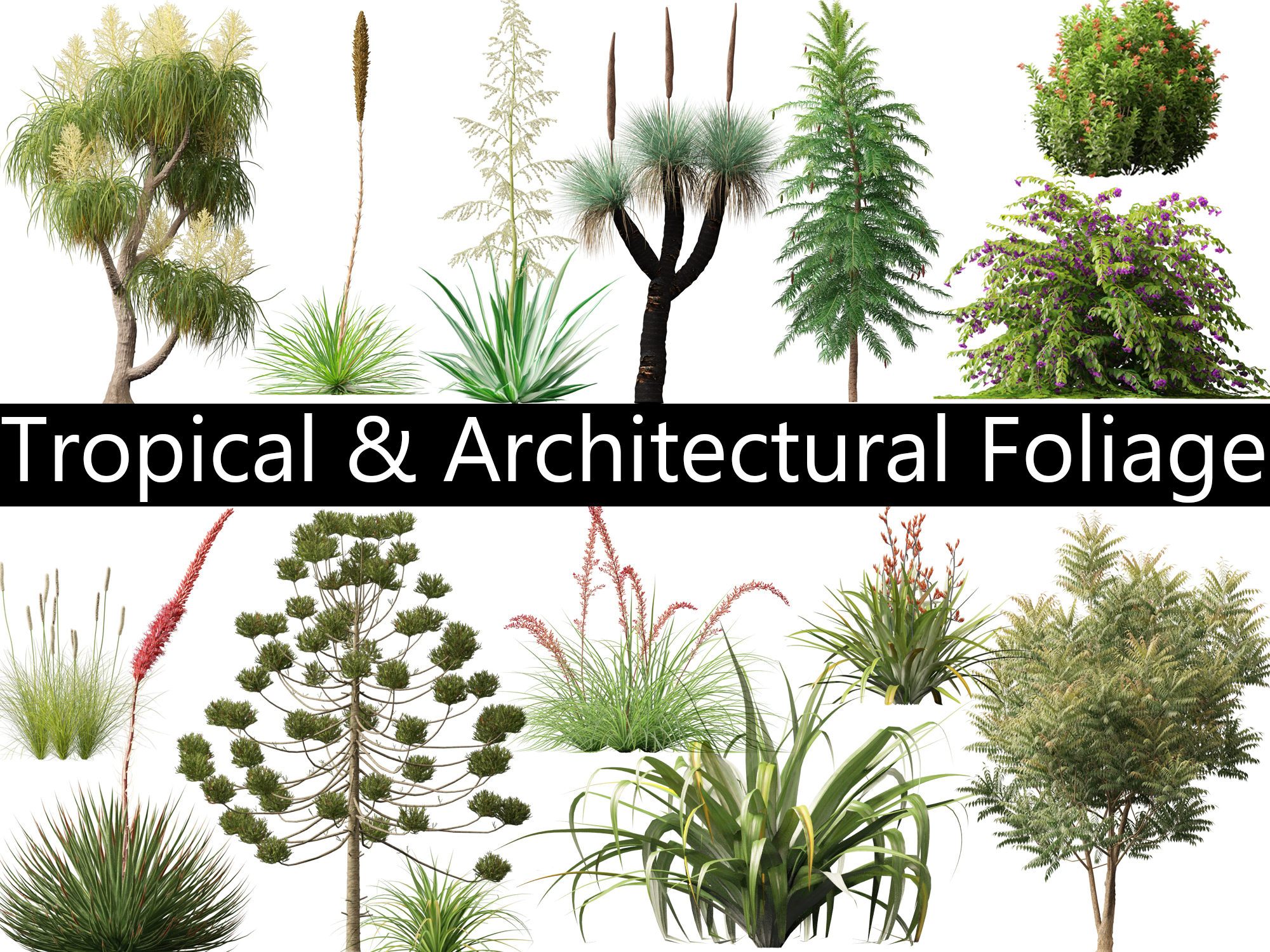 Tropical & Architectural Foliage Pack 51 provides a great selection of models that are very easy to use.It include 15 species.Listed as bellow